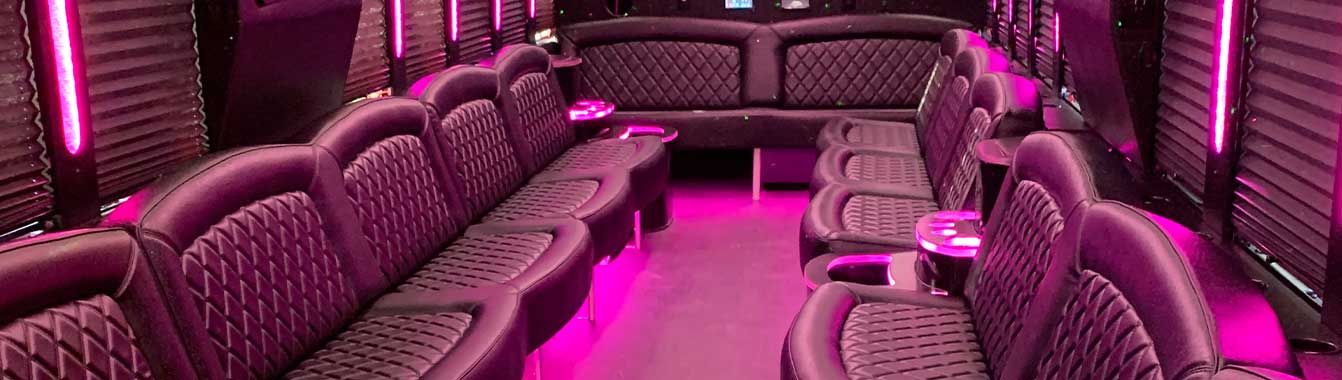 Custom-Designed Limo Van • Upgraded Sound System • Cups, Napkins, and Wet Bar Stocked with Ice and Bottled Water • Bluetooth Connection for Personal Playlist • Premium Limo Lighting • Limo Tinted Windows with Privacy Shades • BYOB